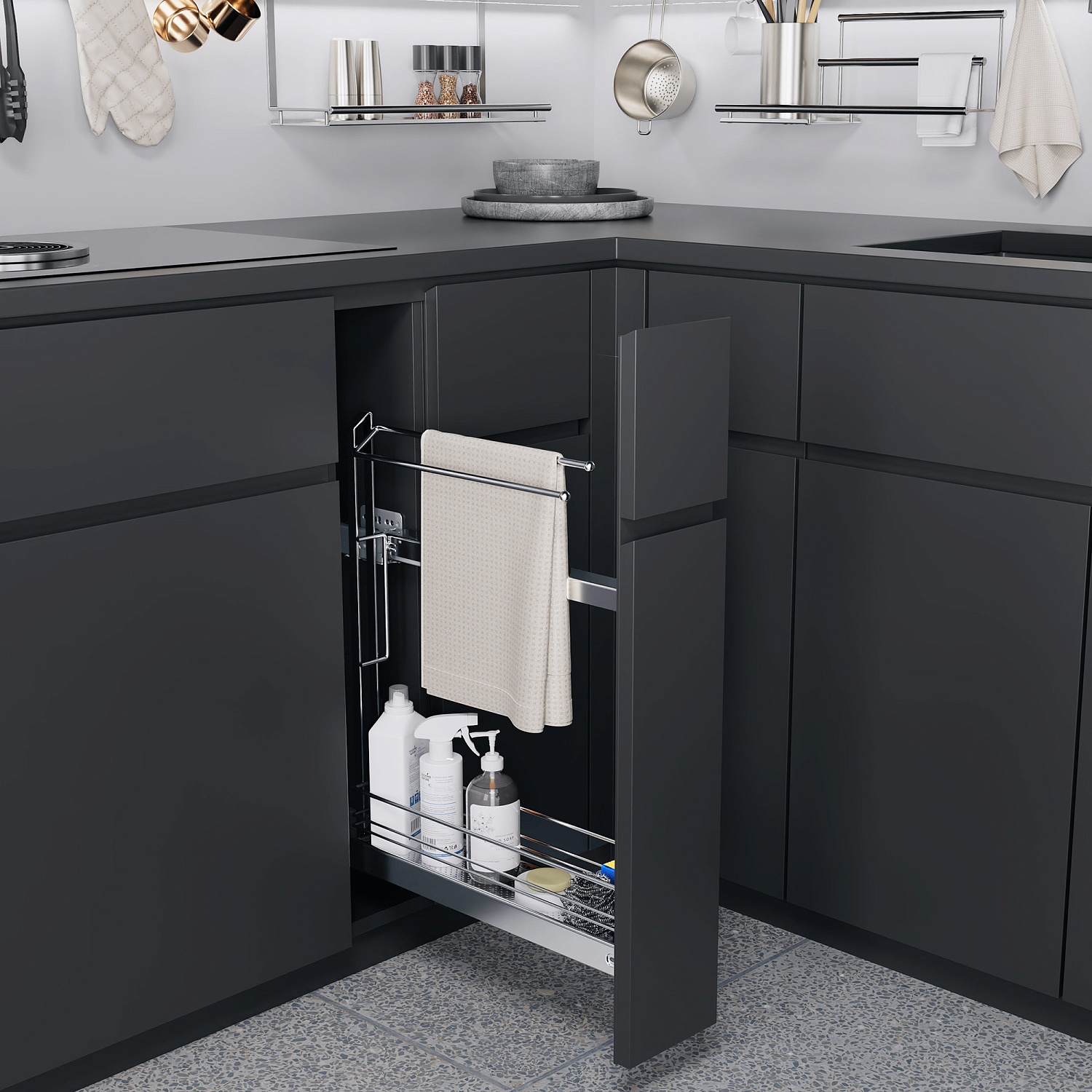 Бутылочница №15 для полотенец H 592 фасад 150 мм 3D Классик ХРОМ Kessebohmer | официальный магазин