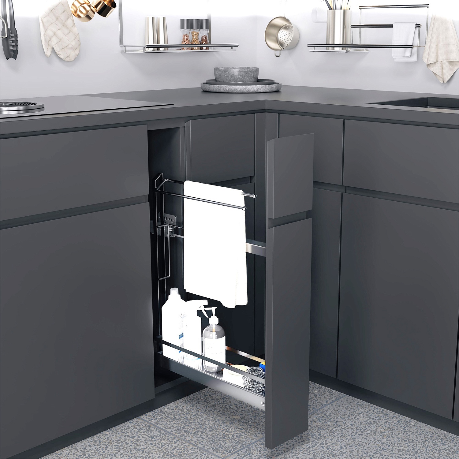 Бутылочница №15 для полотенец H 592 фасад 150 мм 3D Стиль ХРОМ Kessebohmer | официальный магазин