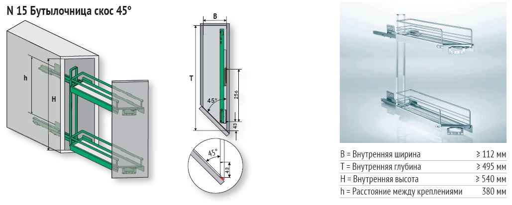 Бутылочница 150 мм + скос 45°, левая, Арена КЛАССИК, цвет ТИТАН, 1 уп. (2312110102)