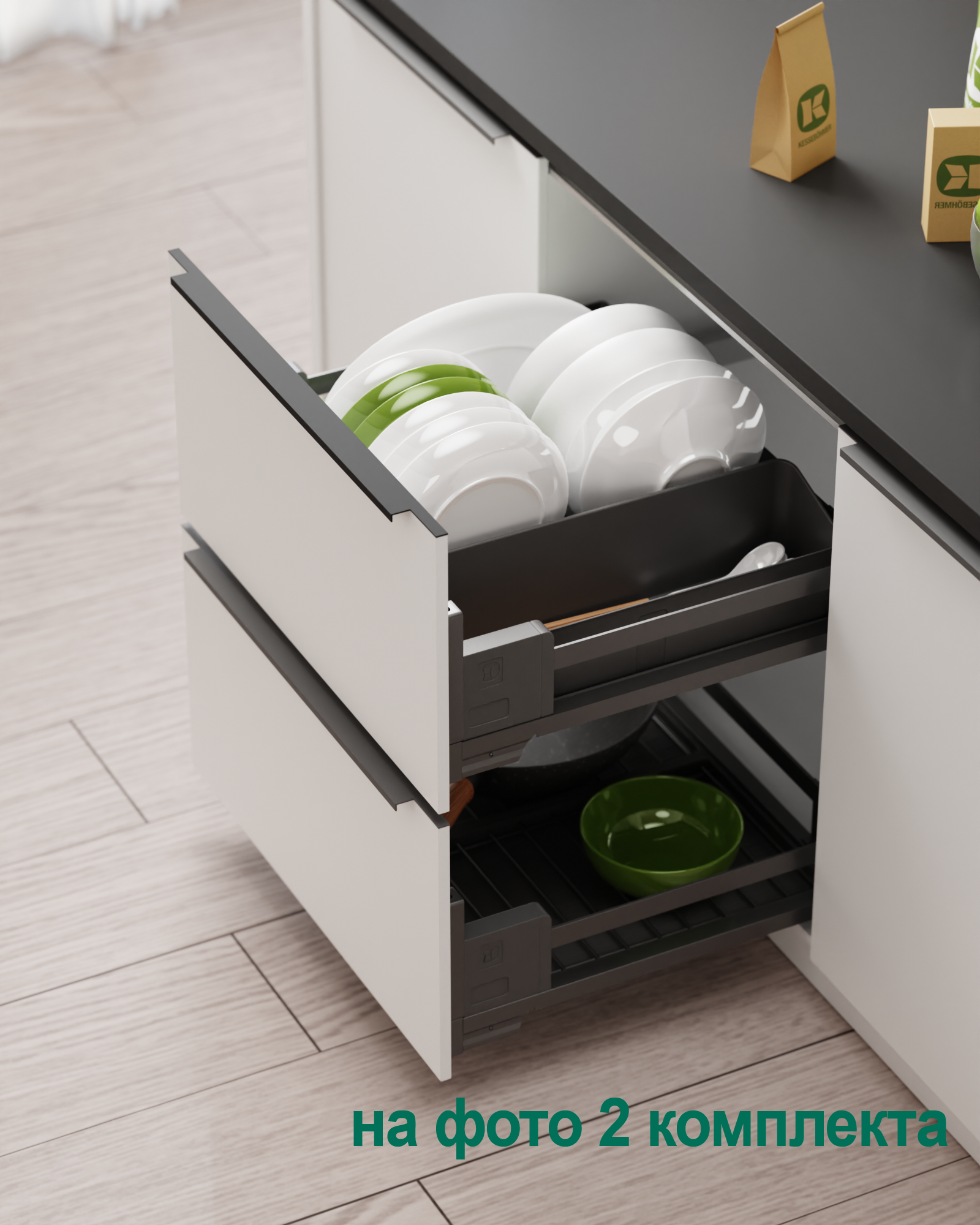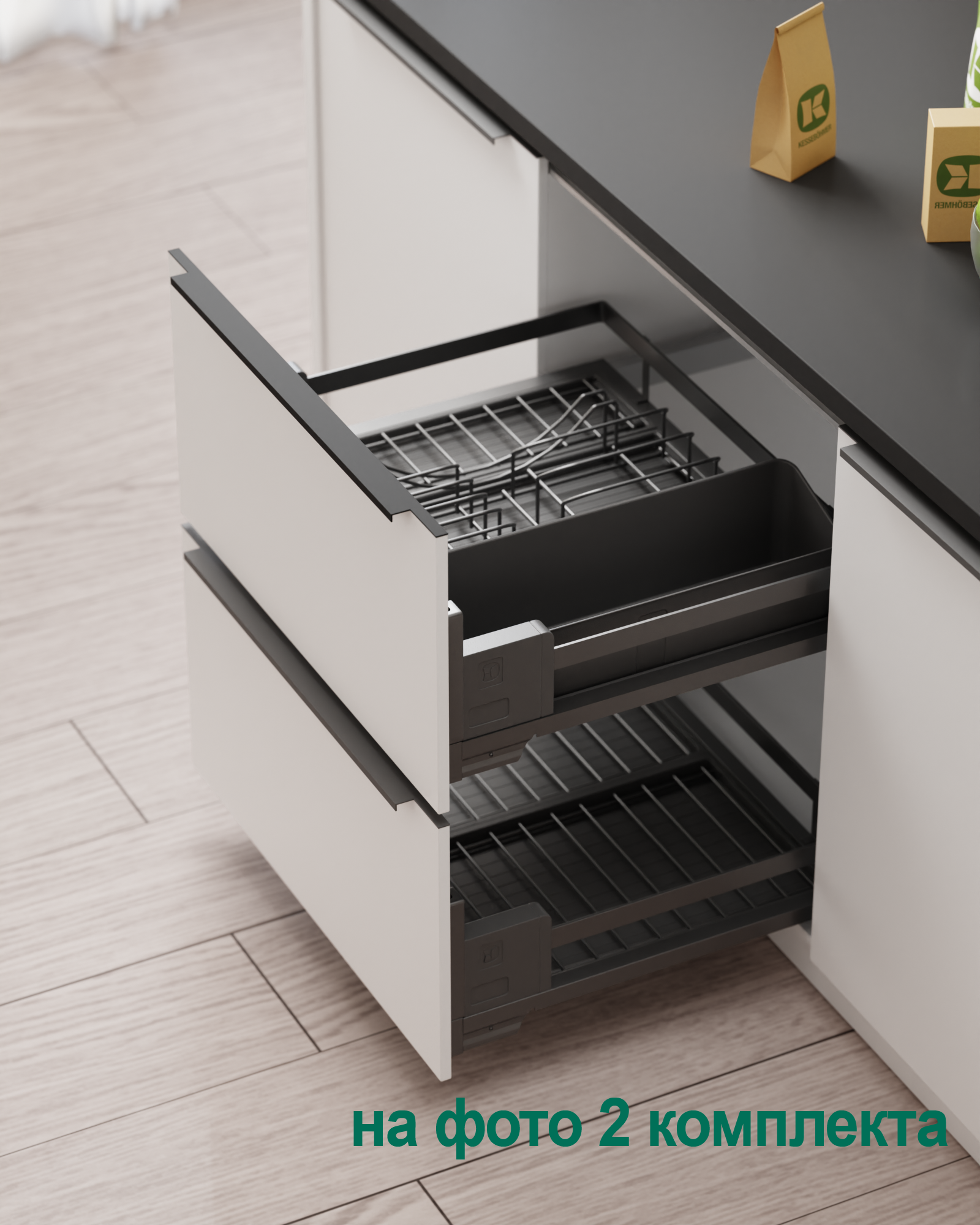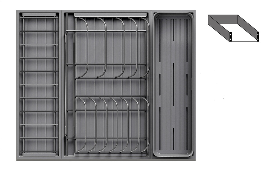 1 модуль для посуды большой (423 x 248 мм, состоит из 1 х держатель металлический, 1 х поддон пластиковый, 2 х защелка-ограничитель)