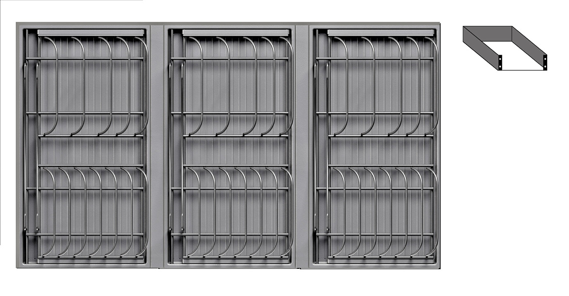 3 модуля для посуды большие (каждый модуль 423 x 248 мм, состоит из 1 х держатель металлический, 1 х поддон пластиковый, 2 х защелка-ограничитель)