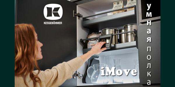 Умная полка iMove обеспечивает быстрый доступ к содержимому в высоких кухонных шкафах без дополнительных приспособлений. АйМув заменяет собой вторую и третью полки в шкафу. Механизм плавно опускается в зону удобного обзора и надежно фиксируется в этом положении.